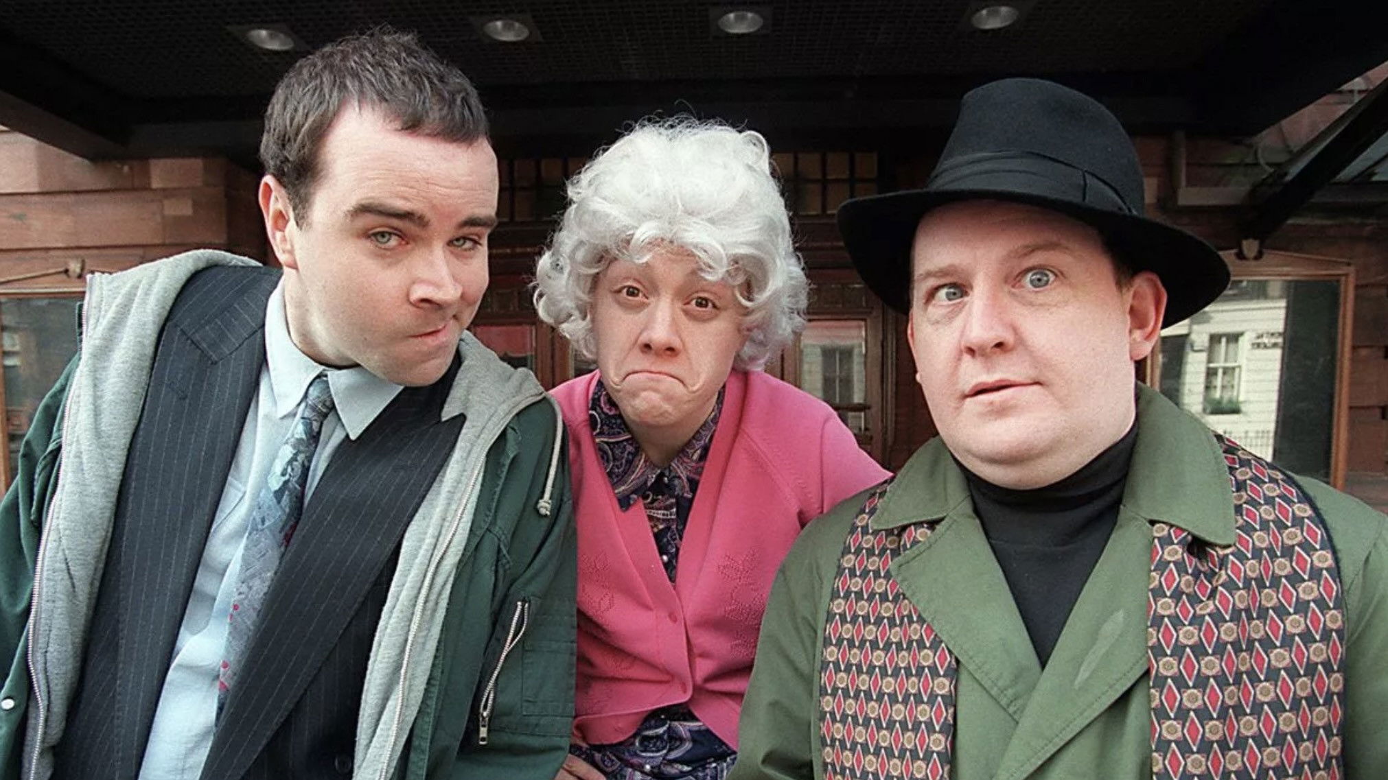 Chewin' the Fat is a Scottish comedy sketch show, starring Ford Kiernan, Greg Hemphill and Karen Dunbar. Comedians Paul Riley and Mark Cox also appeared regularly on the show. Chewin' the Fat first started as a radio series on BBC Radio Scotland. The later television show, which ran for four series, was first broadcast on BBC One Scotland, but series three and four, as well as highlights from the first two series, were later broadcast to the rest of the United Kingdom. Although the last series ended in February 2002, 6 Hogmanay specials were broadcast and offered on DVD when purchasing the Scottish Sun between 2000 to 2005, one every year. Chewin' the Fat gave rise to the spin-off show Still Game, a sitcom focusing on the two old male characters Jack and Victor. The series was mostly filmed in and around Glasgow and occasionally West Dunbartonshire. The English idiom to chew the fat means to chat casually, but thoroughly, about subjects of mutual interest.